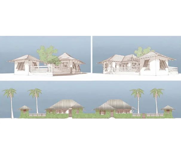 Models in admitting natural light and ventilation, configured to amplify breezes, and with north-facing clerestory to reduce the need for electric lighting. Raised on piers, treading lightly, preserving the woodlands and natural drainage patterns. Buildings of light construction that conserve natural resources.